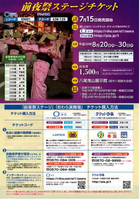 2018年 「おわら風の盆」祭り お知らせ