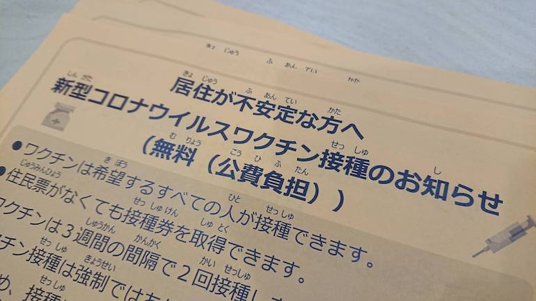 今回は、大阪市から提供された「居住が不安定な方でもワクチン接種可能」をお知らせするチラシも同梱しました。