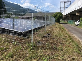 先週の大雨の影響で、八屋戸太陽光発電所のフェンスが破損してしまいました(汗)
