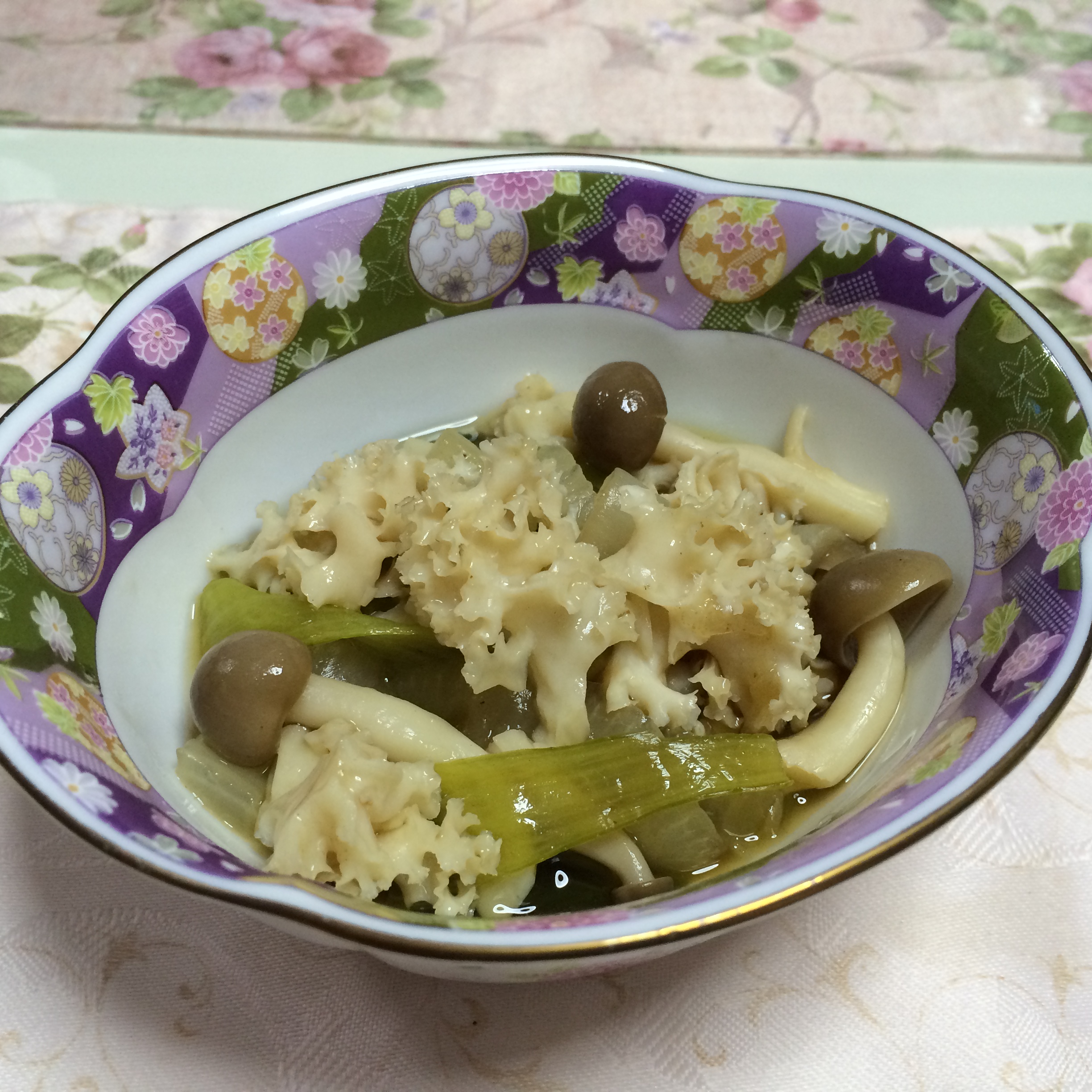 他の野菜(玉ねぎ・青梗菜・しめじ)はとろとろ、柔らかくになるのに、はなびらたけだけはコリコリした食感が残っていて、美味しかった。見た目のアクセントにもなりますね。