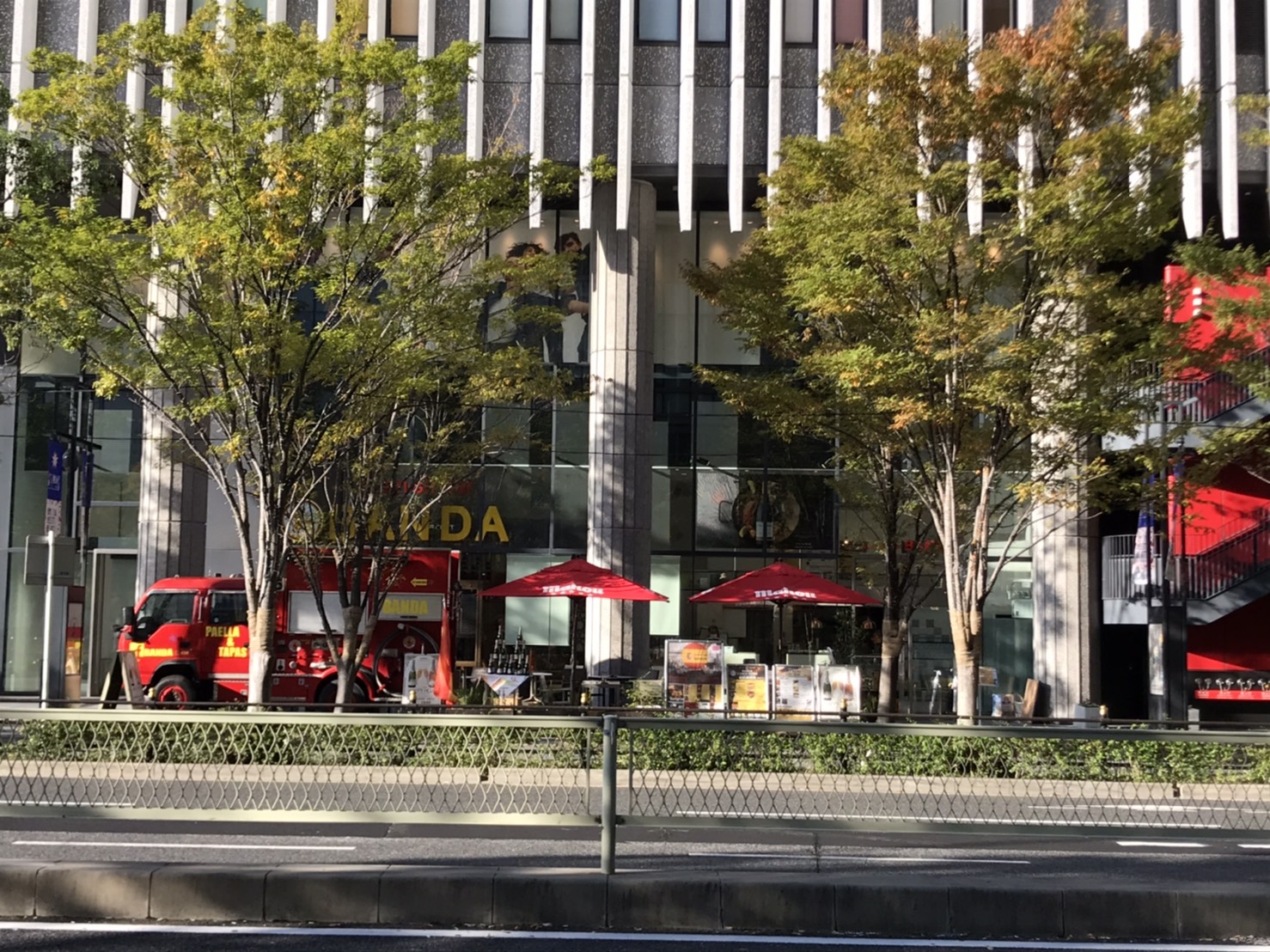 >グランフロント店テラスに消防車キッチンカー置いたのは自分でも笑ってしまいました。目立ちようが凄いですが、御好評頂いております。