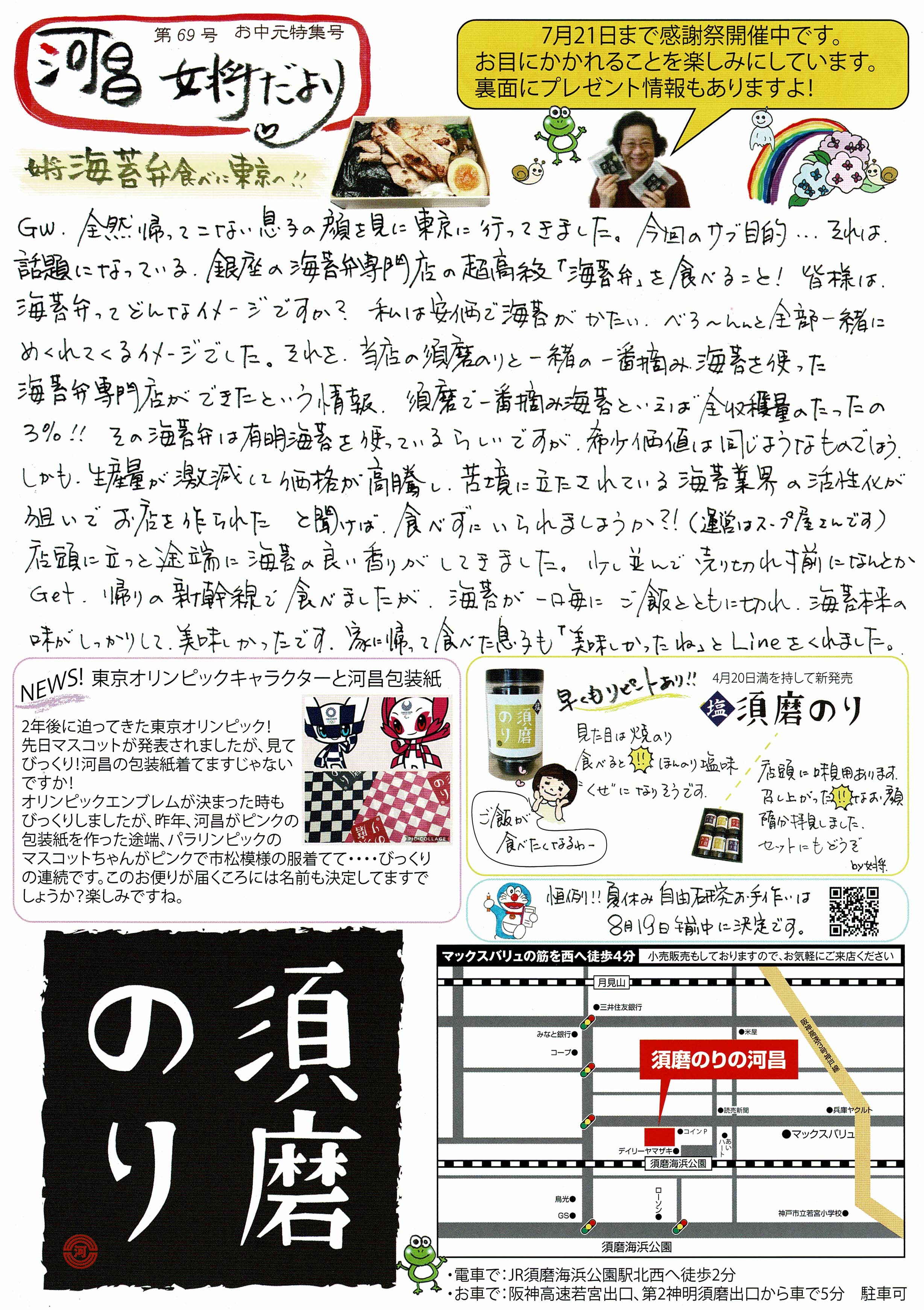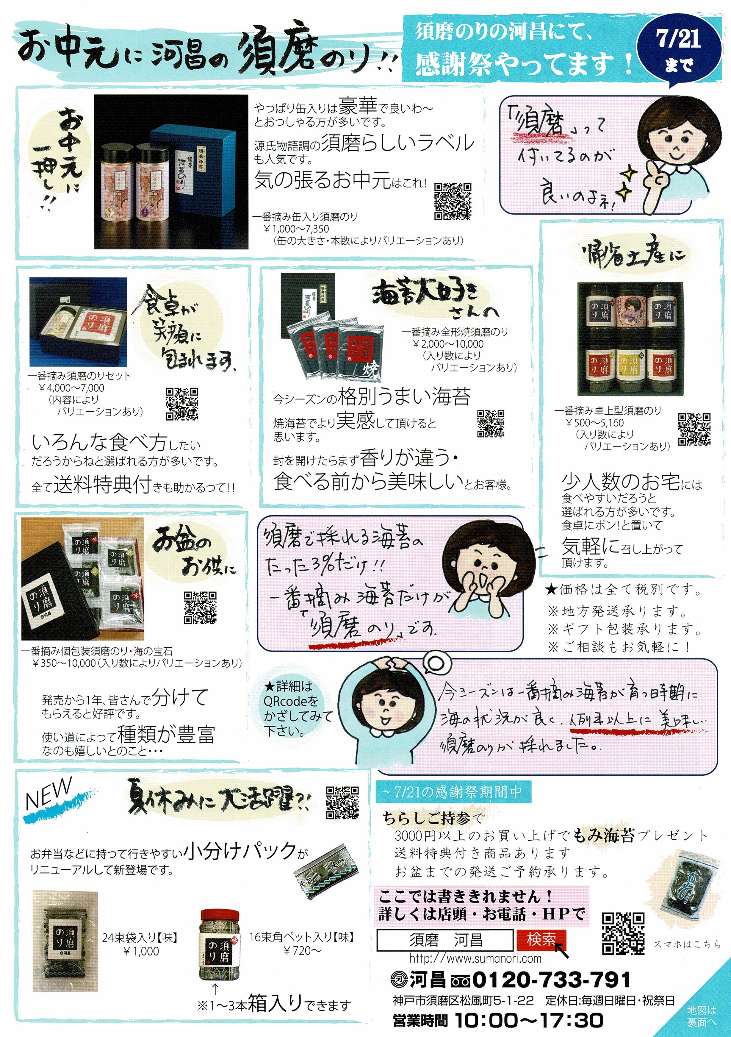 神戸・須磨 海苔専門店須磨海苔の河昌・女将の藤井です。