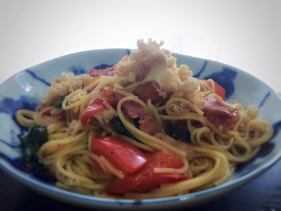 調理例:はなびらたけとトマトと色々パスタ