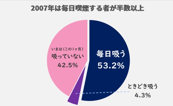 この調査は2007年のもので、当時(2007年)の日本の喫煙率は男女あわせて57.7%でした。