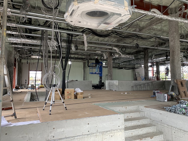 こちらの写真は、1月中旬に撮影したものです。この頃は、外壁がほぼ完成し内装作業がメインなっていましたが、
