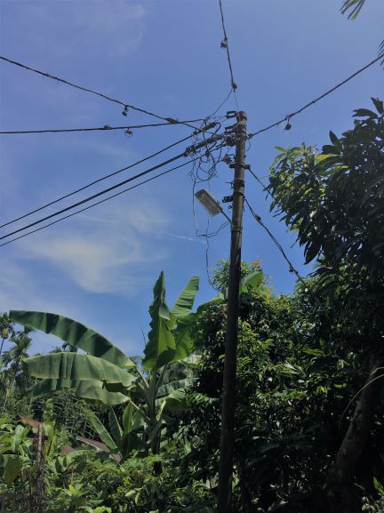 ▲戦後賠償で作られたと言う電線。湖の近い綺麗な村に立たずみ夜は村に光を届ける