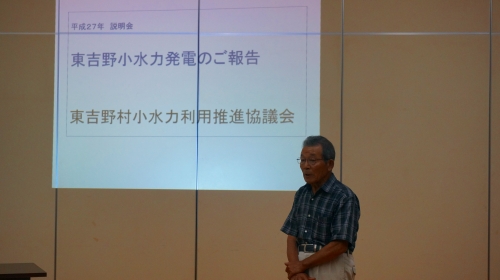 東吉野小水力利用推進協議会 会長 上髙垣内さんによる報告