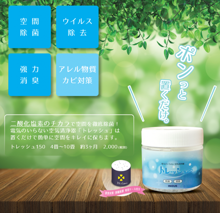 秋カビ対策にも「電気のいらない空気清浄器 トレッシュ」をよろしくお願いいたします。
