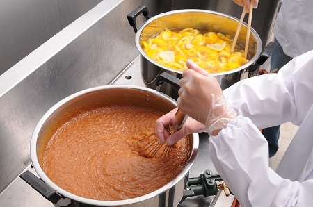 煮込み作業は手際よく。 2015年7月6日 阿波の逸品 柚りっ子ファンド みんなの反応 0 0 0 原材料の御膳みそ・甜菜糖・ゆずペーストが揃ったら、手早く煮込みます。 この配合・スピードと温度が、柚りっ子の味の決め手になります。 厨房いっぱいのゆずの香りをご想像ください。