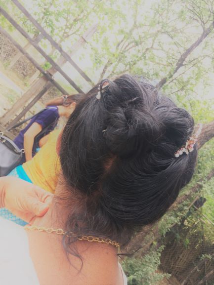 ▲お洒落に結われた女性村長の髪「夫はいつでも見てるから綺麗にしておかないと」