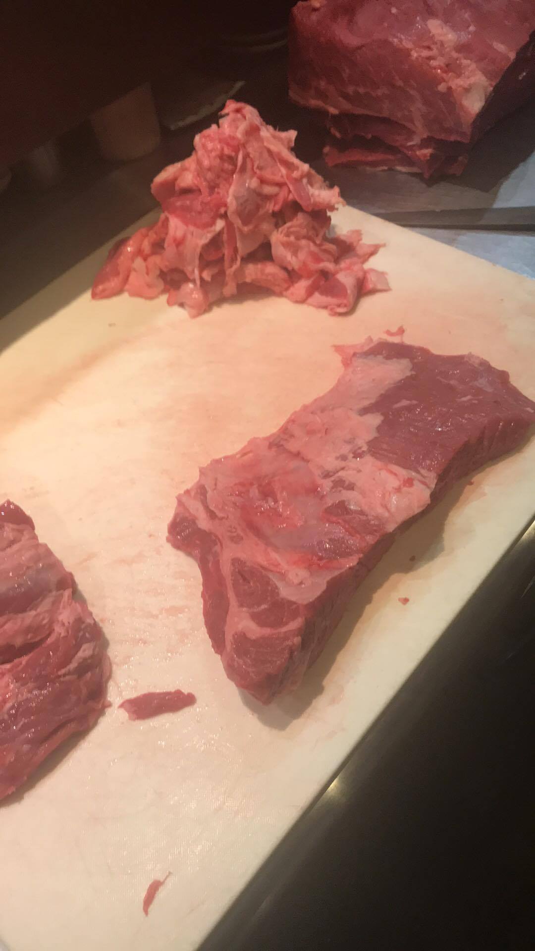 画像上の方に写っている筋肉はシチューになります。しっかりと煮込みます。
