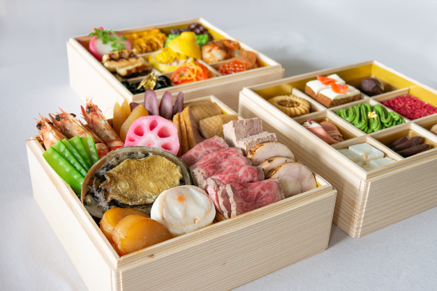 12月30日、作りたてのお料理をチーム全員の手作業で丁寧に重箱に詰める数量限定での販売です。保存料、防腐剤、発色剤、化学調味料を一切使用せず、無添加に配慮したおせちを冷蔵でお届けいたします。