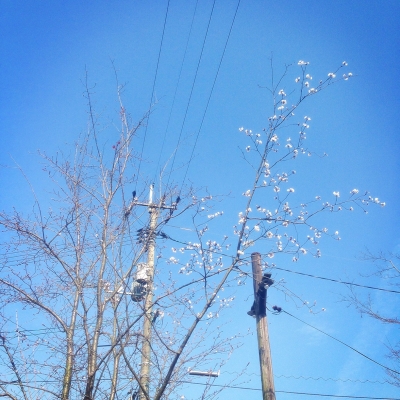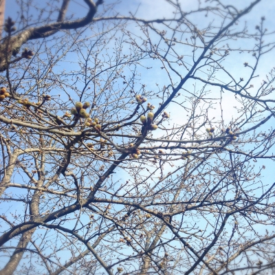 いいお天気つづきに ついにお店の桜が顔を出しました。