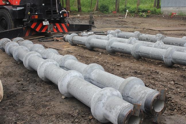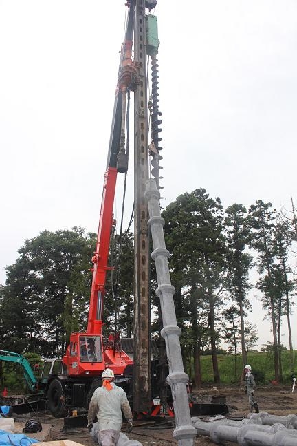 現在、7メートルの長さの杭を4つつなげ、建物の外側となる部分と内側の部分に均等に杭を打っています。