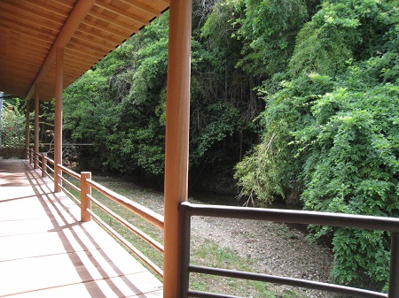 建物の裏側に天見川が流れており、天見川を臨むかたちでこのような濡れ縁があります。