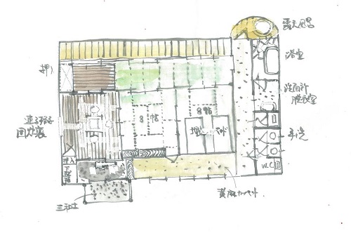 そして、こちらは改装後の全体的な見取り図です。 (図面の上部が濡れ縁になります)