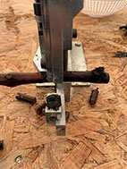 マシーンを踏み込むと穂木が降りてくるのと同時に台木がカッターで切られます。