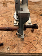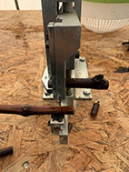 まずワインブドウの枝(穂木)をオメガカッターに載せます。
