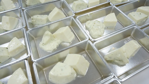 試食としてしょうが味とバジル味のおとうふを用意しました!