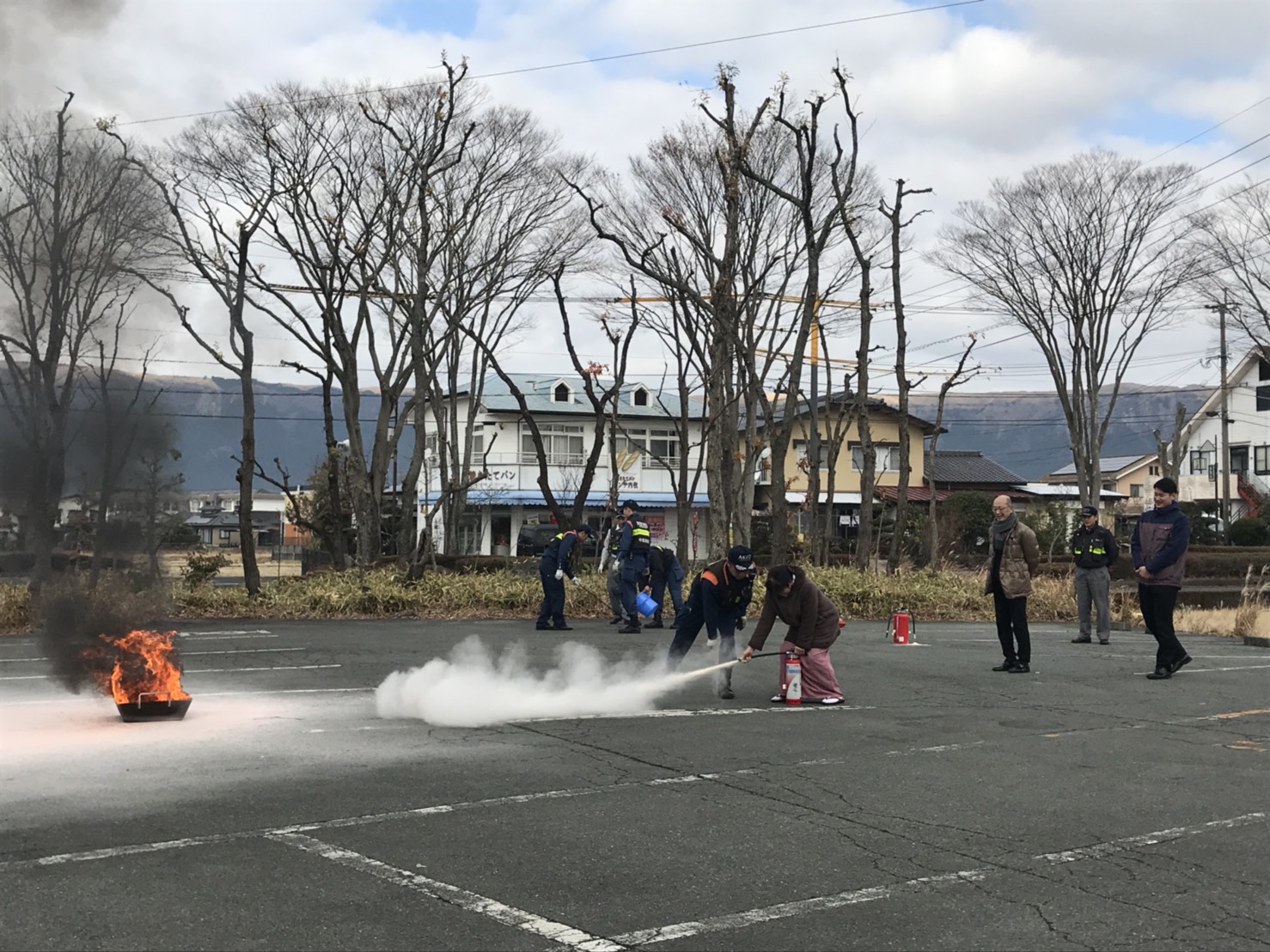 寒空の中、消火訓練もおこないました。