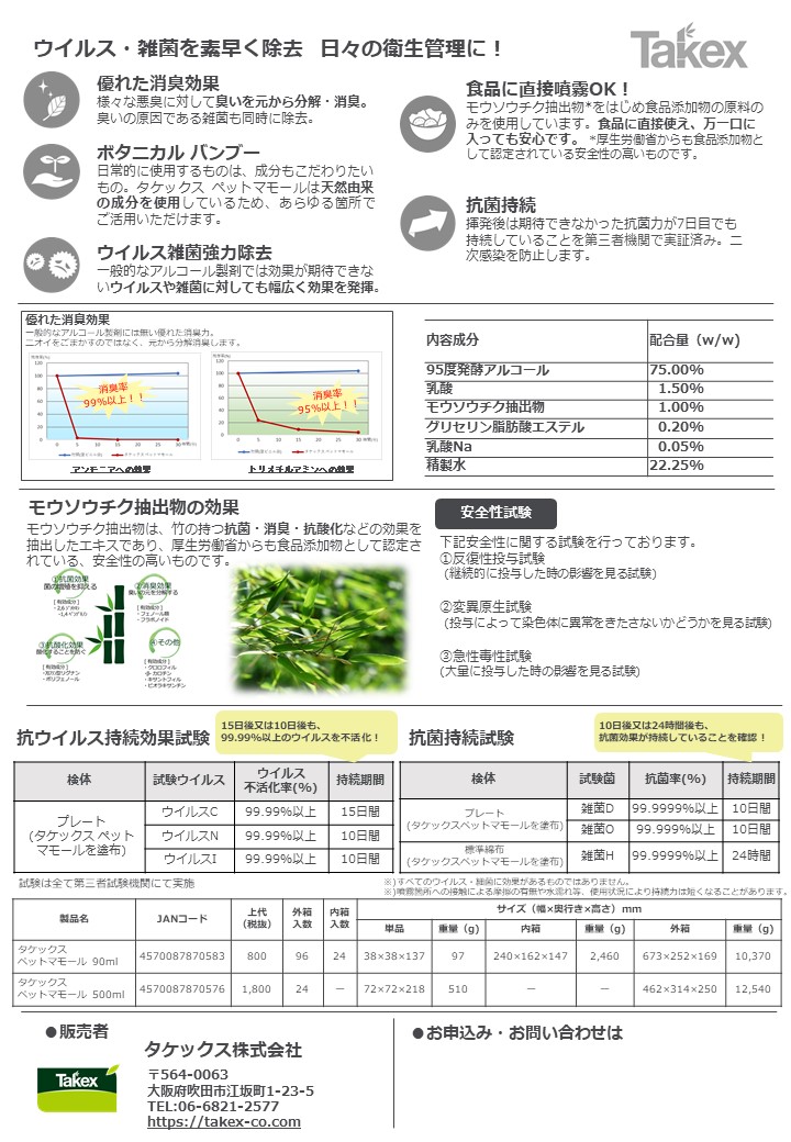 ワンちゃんやネコちゃんが、飼い主の手を舐める事が良くありますが、「Pet Mamo-ru(ペットマモール)」は食品に使用できる成分で作られているので、アルコール揮発後は舐められても安心です。