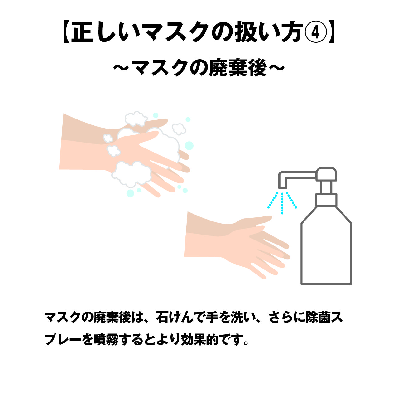 今回は、新型コロナウイルスの蔓延により必需品となった「マスクの正しい扱い方」と弊社で販売中の「タケックスマスクスプレー」のご紹介をさせて頂きます。
