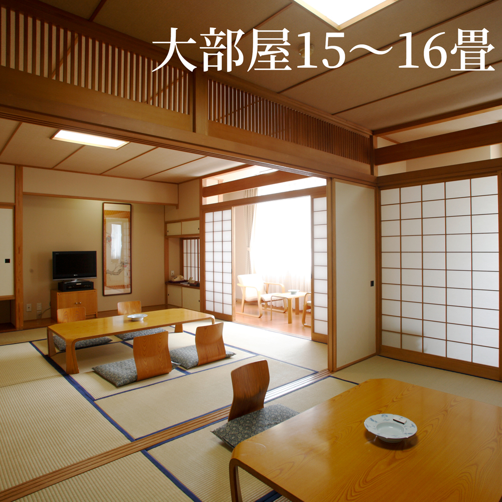 ・本館和室10畳 ・特別室10畳+7.5畳 ・和洋室(54平米) ・露天風呂付き和室(43平米) ・大部屋15~16畳