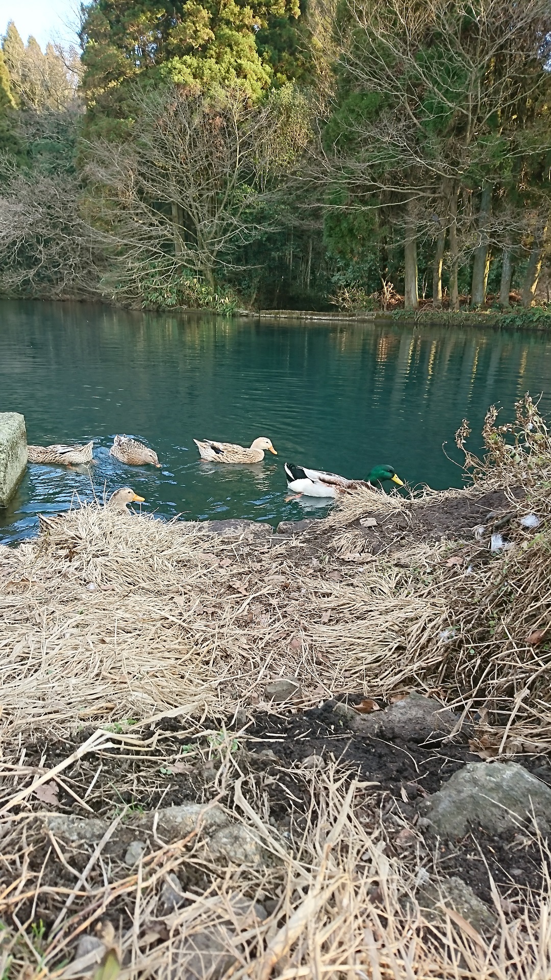 左側では優雅にアヒルさんが泳いでおります。