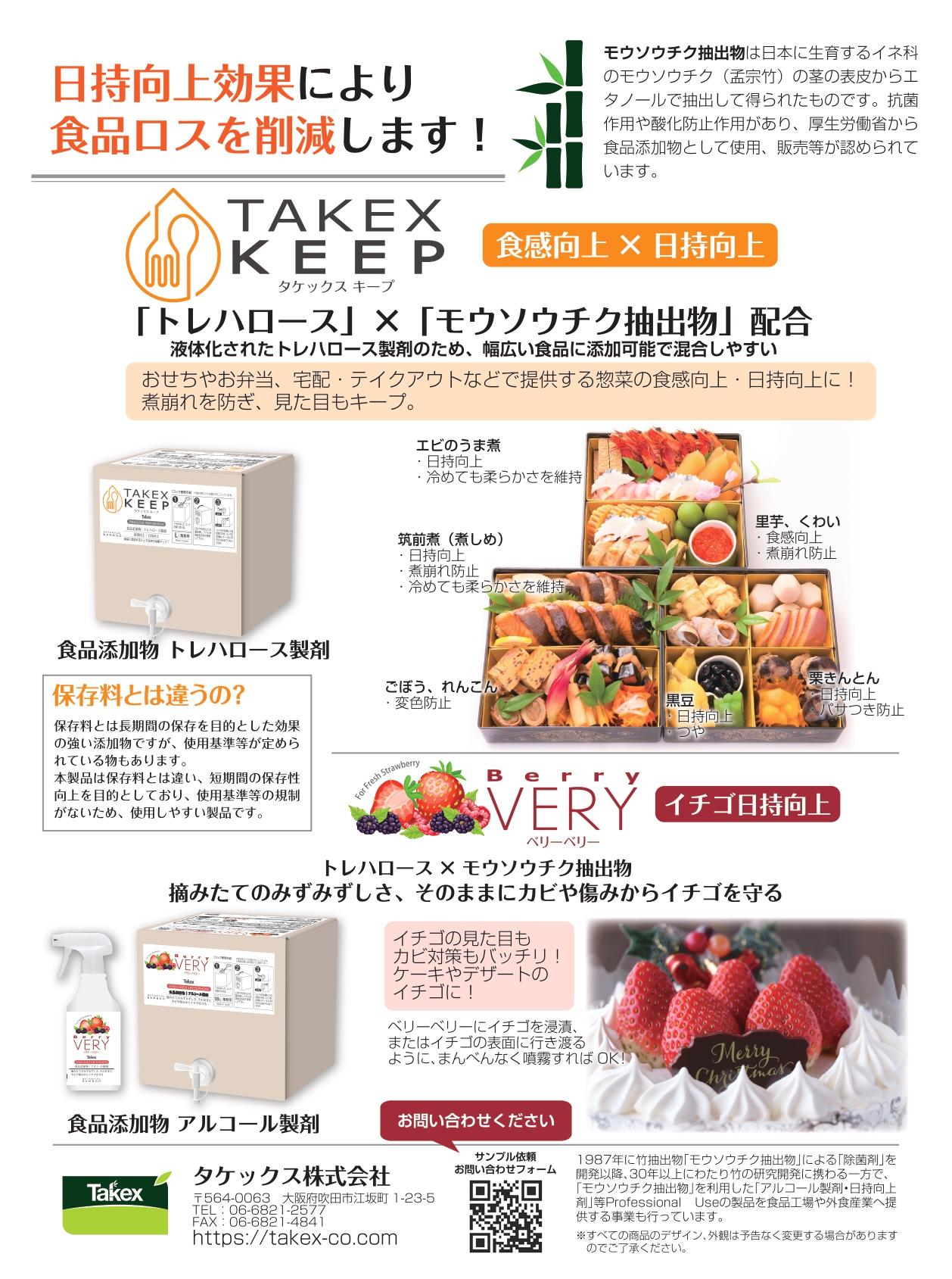 「タケックスキープ」、「ベリーベリー」が10月20日売りの外食産業専門のビジネス誌である「月刊食堂(11月号)」に掲載されました。