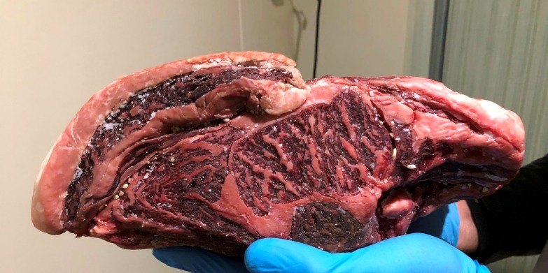 赤身肉のかたまりを包装などせずにそのまま空間にさらし、大きな空気の流れの中で乾燥熟成させることで、肉自身の重量は20%以上減少します。しかし、その分旨味が凝縮されます。