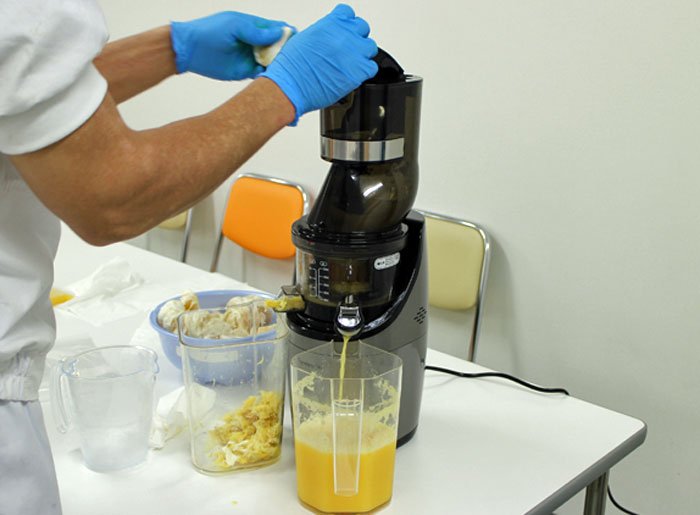 そこで今期は、自社で業務用低速ジューサーを購入し加工することにしました。