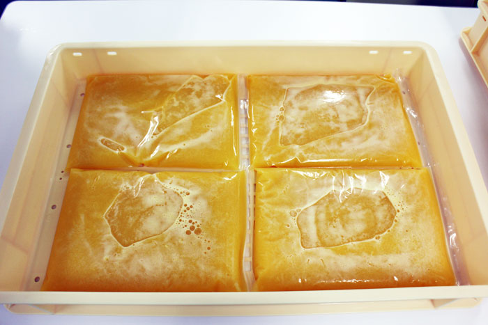 果汁は小分けして工場の冷凍庫にストックします。