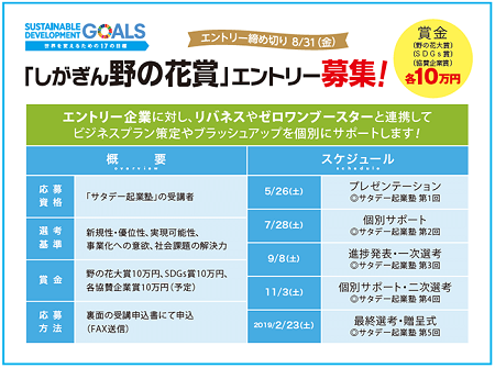 新たな挑戦!! 2018年6月21日 日本茶発祥の地 近江の国の土山茶ファンド みんなの反応 0 0 0 2017年に、滋賀銀行のサタデー起業塾で、「しがぎん野の花賞(リバネス賞)」を受賞したのですが、2018年度も新たな挑戦を目指してみたいと検討中です。