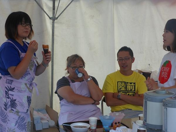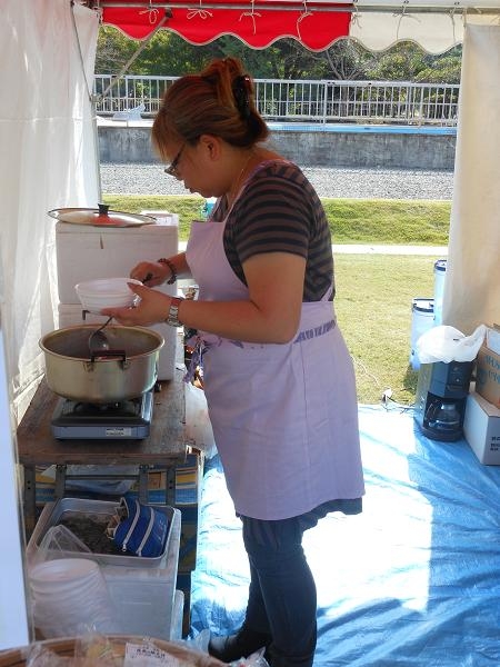 [熊谷さんと一緒に来られた丸光食品の社員の方が「はっと汁」を作りました]