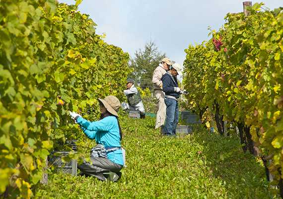 「キュヴェ・ヴァンダンジュ2021」のグラスワインをご用意いたしますので、作業後の一杯をお楽しみください(運転者以外・20歳以上)