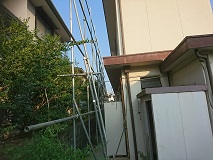 埃を巻き上げない為と防音措置の為、住居をぐるりとシートで被います。