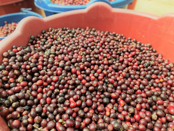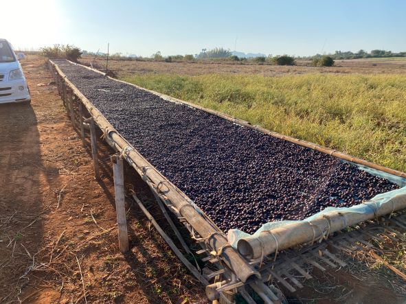 とれたコーヒーチェリーは、こんな風に乾燥させ、精製という工程に入ります。