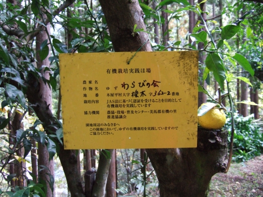 有機栽培で柚を育て、収穫しているボランティア団体です。目的は5人に一人子供が