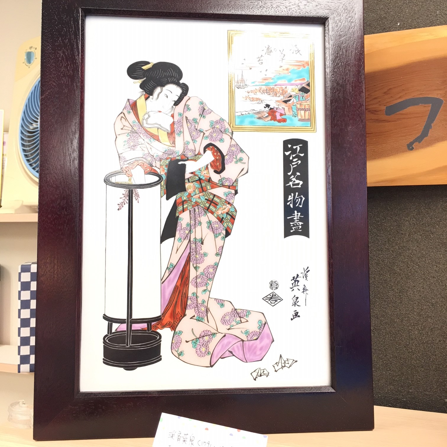 何の気なしに壁にかけていた浮世絵の有田焼の陶板も