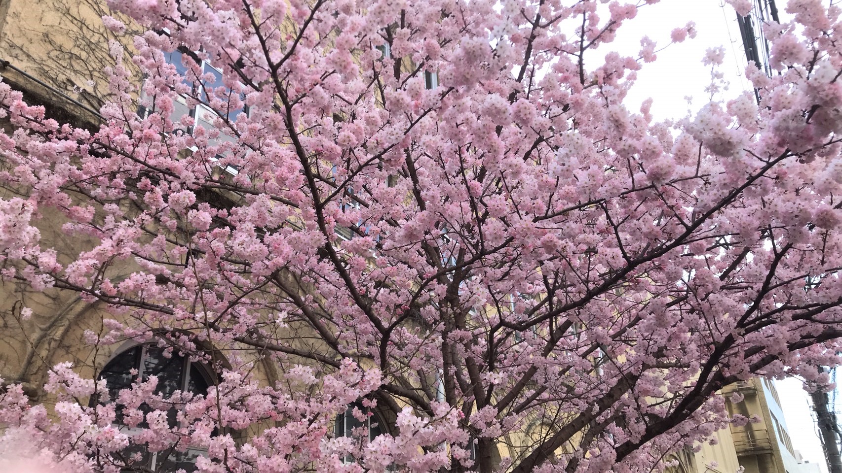 ビルや、建物に囲まれた場所に位置し、突如として現れるその美しい桜に見とれ、写真を撮る人が多いことから「ビル街のオアシス」とも言えそうです。