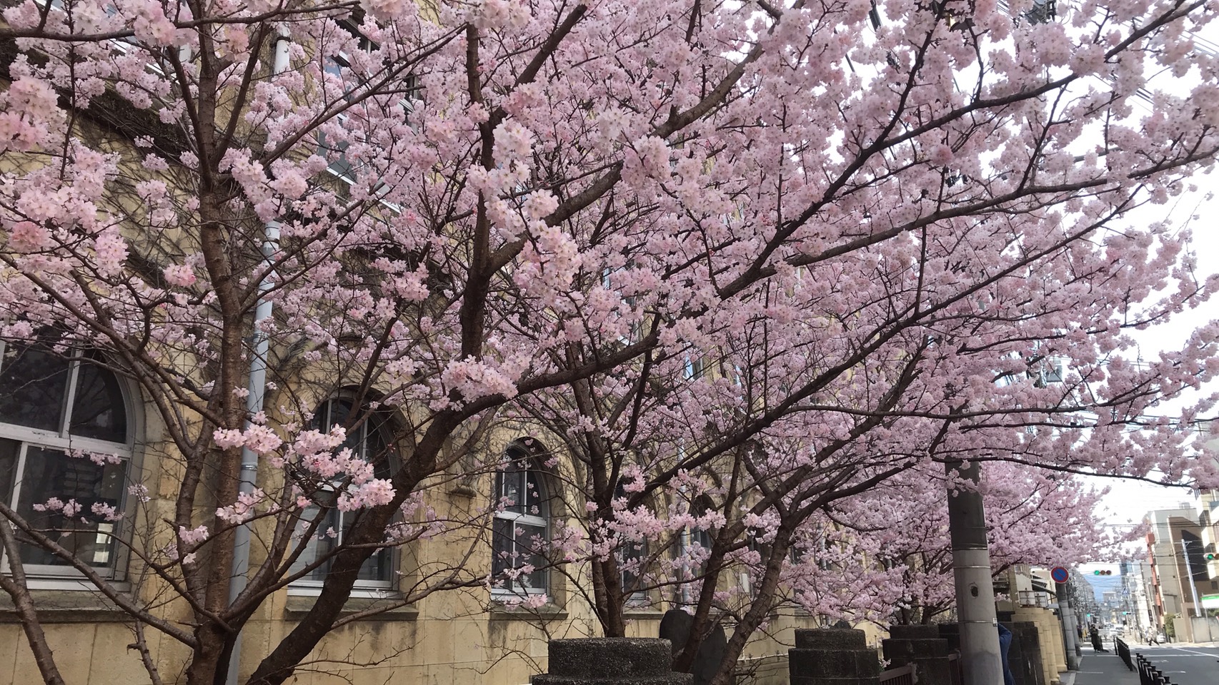 現在、旧成徳中学校では、「春めき桜」が絶好の見どころを迎えています。