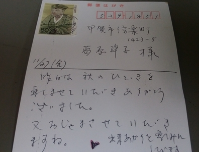 後日、お葉書が届きました。