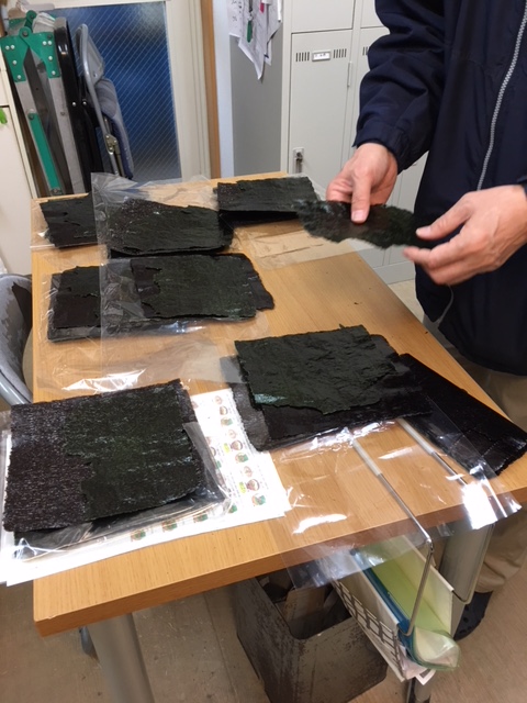 昨日、今日採れたての海苔のサンプルを見せてもらってきました。