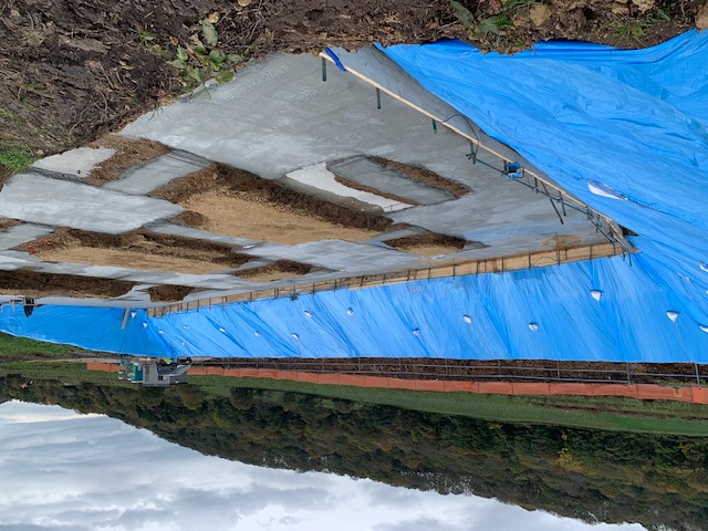 基礎の基礎部分ができてきました。奥にはマオイの丘からの眺望が見えます。