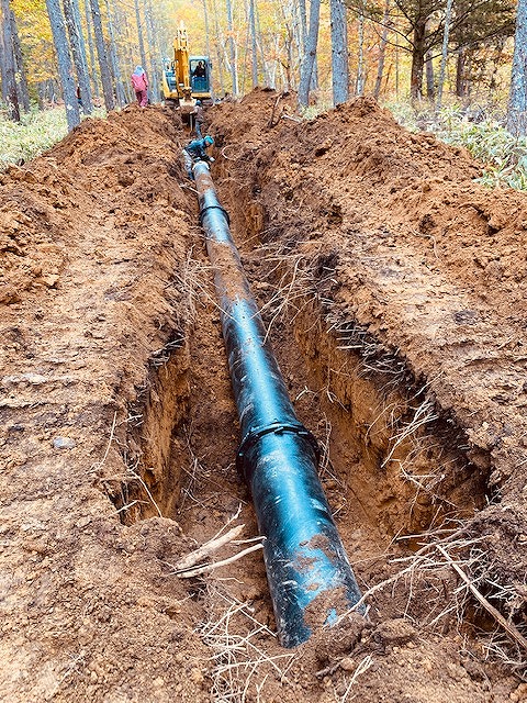 第二発電所に先駆けて建設中の第一発電所では、導水管の埋設工事が順調に進んでいます。