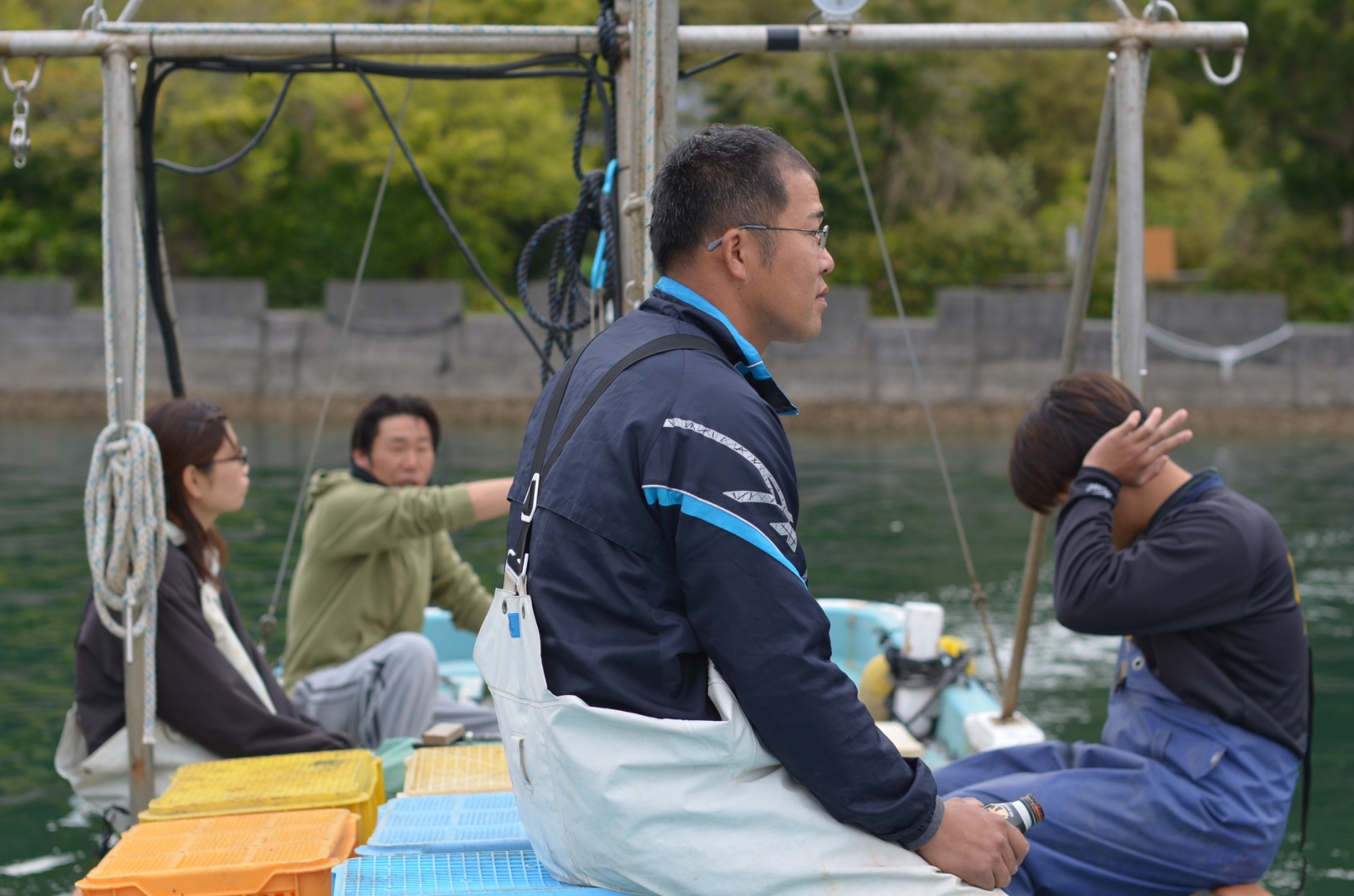 フリップファームシステム 洋上現場風景 【大入島オイスター:新栄丸】