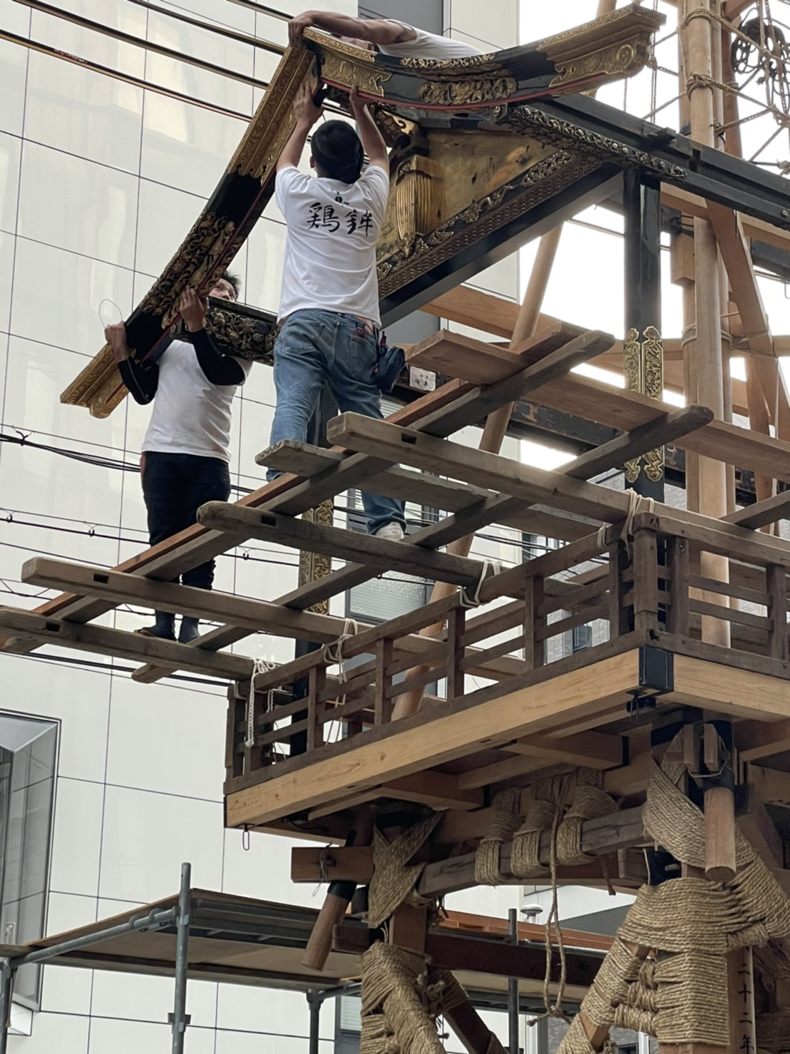 去年に引き続き山鉾巡行は中止となっておりますが、今回の山鉾建ては技術継承のために実施されたようです。