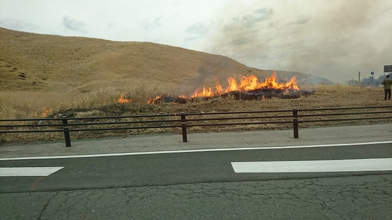 阿蘇に春をつげるイベント『野焼き』がおこなわれました(´▽`)