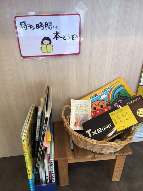 退屈しのぎに本や飴ちゃん、お水もご用意しております。