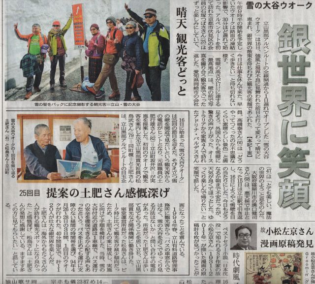 雪壁、高さ17mの間を散策する「雪の大谷ウォーク」が